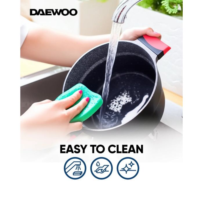 Bring style and performance to your kitchen with the Daewoo granite casserole with lid, 28 cm. Designed for even heat distribution and lasting durability, it’s perfect for cooking and serving your favorite family meals with ease.