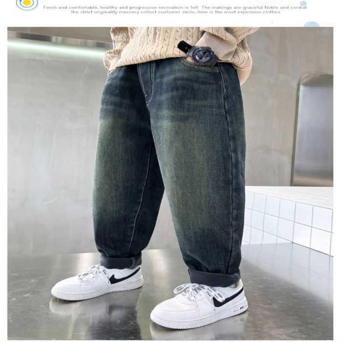 This Boys Denim Pants made from warm material, trendy denim design, comfortable fit for movement, suitable for cold weather with a neat kids look