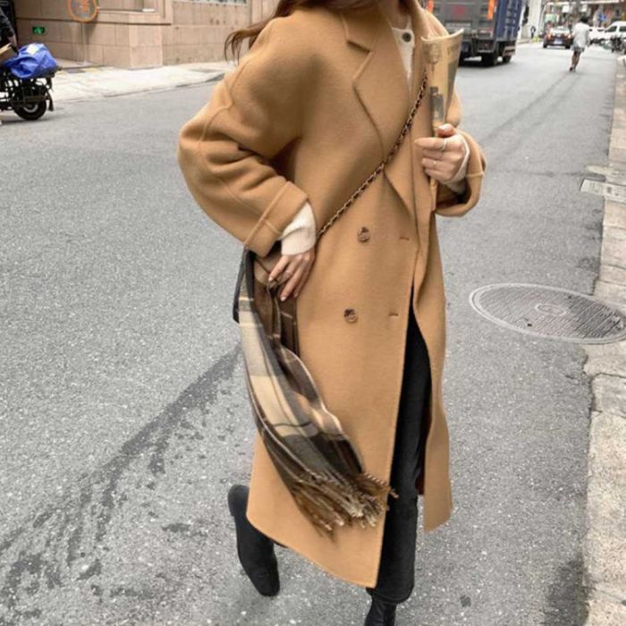 - Elegant Double-Breasted Wool Coat Women