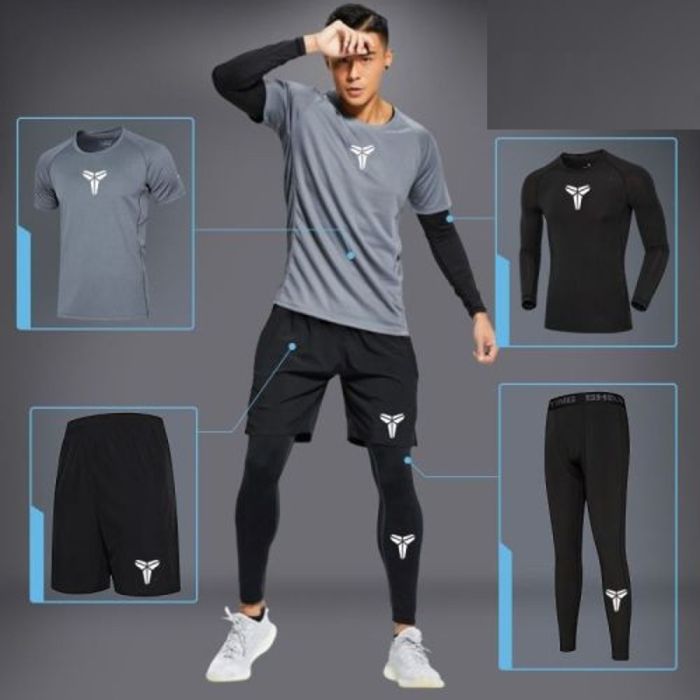 This Men's Black Mesh Loose-fitting Fitness Set Made of Breathable Mesh Fabric, Featuring Design Ideal for Running and Skiing, Providing Coolness and Comfort During Exercise, for a Stylish and Comfortable Sportswear Outfit.
