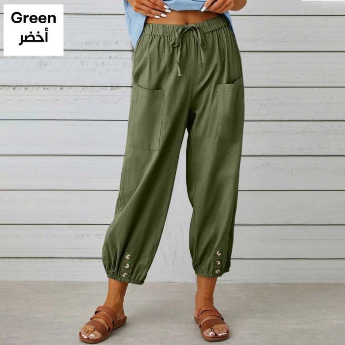 - Elegant High-Waisted Cotton Linen Wide Pants for Women
