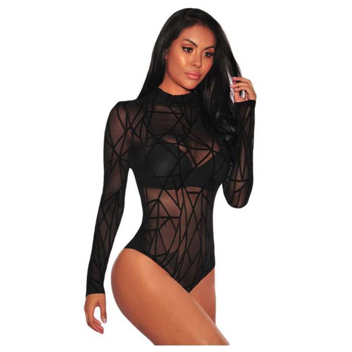 - Elegant Lace See-Through Long Sleeve Bodysuit for Women