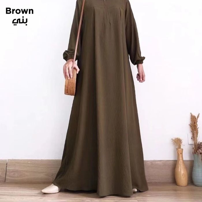 - Elegant Long Dress With Long Sleeves and Front Zipper