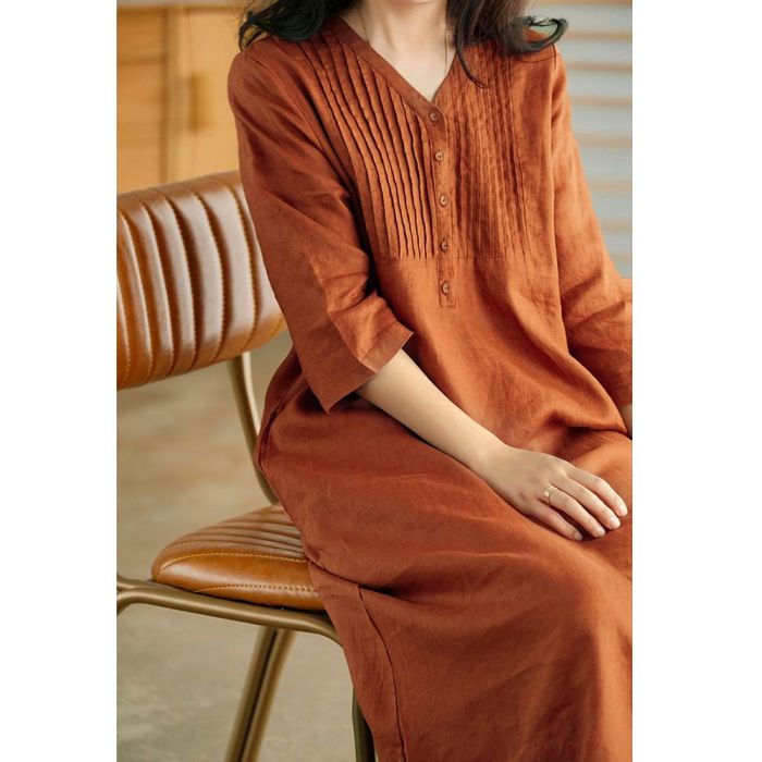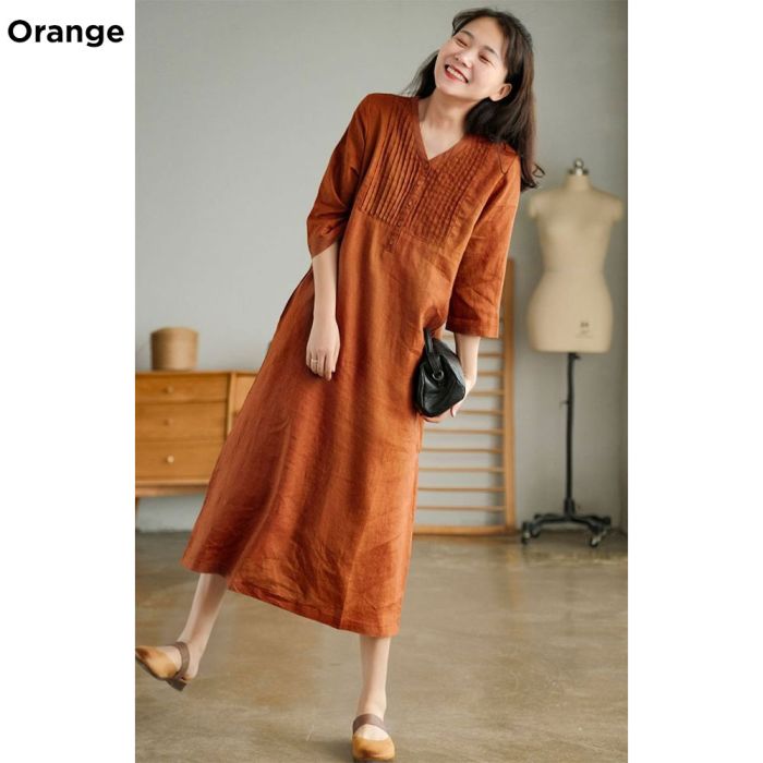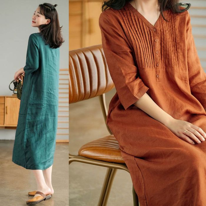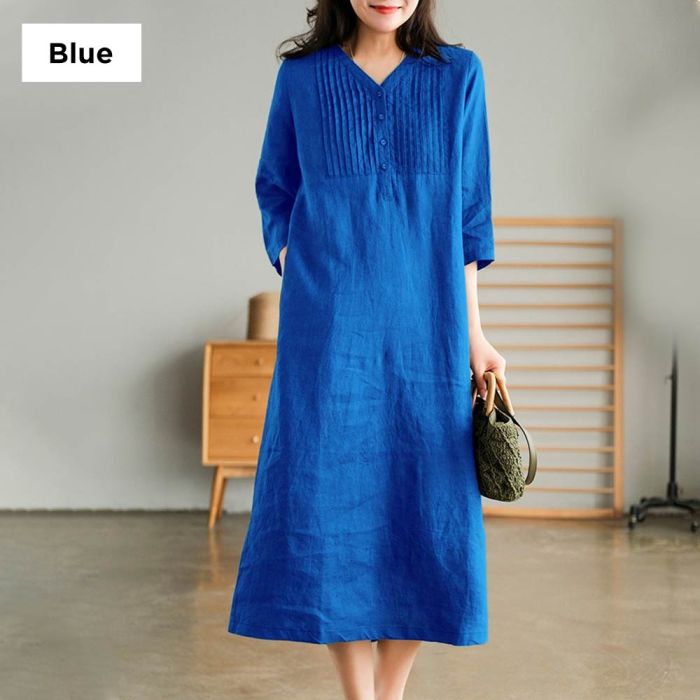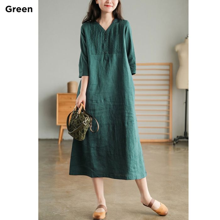 Welcome to spring and summer with this dress, a must-have for a stylish and practical look. Made from lightweight linen, it offers comfort. It features a loose, relaxed fit that drapes beautifully, while the elegant V-neck and short sleeves add a touch of sophistication. Whether you're heading out for brunch, shopping, or a casual evening out, this solid-colored dress is easy to style with accessories.Today’s Deal is Elegant Long Linen Dress with V-neck
