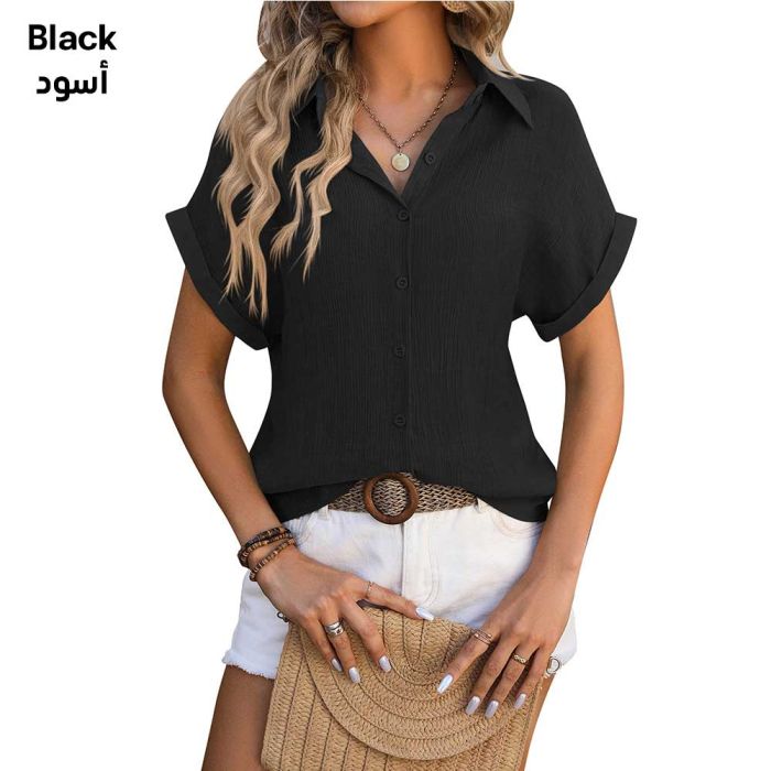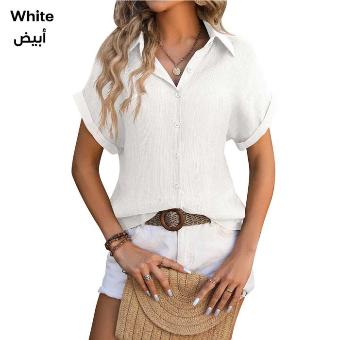 This Elegant, Casual, Women's Shirt is Crafted from a Lightweight Fabric Blend for a Fresh, Comfortable Feel. Featuring Aesthetic Pleats and a Loose Fit for Freedom of Movement, This Shirt is Ideal for a Sophisticated, Feminine Look. It Maintains Its Quality and Great Shape, Making It Suitable for a Variety of Informal Occasions.