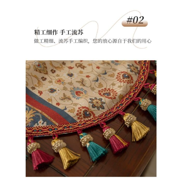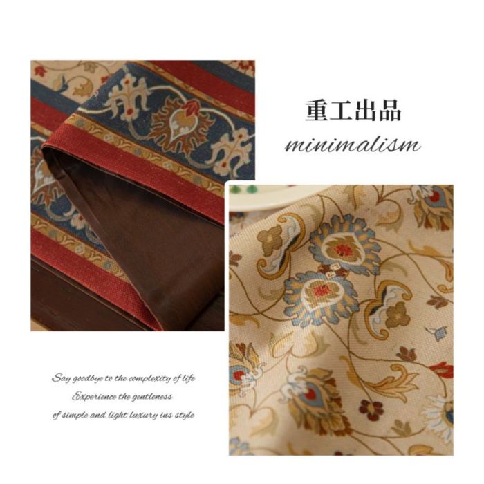 This Elegant retro style table runner made from polyester fibers, featuring classic patterns and tassel-trimmed edges, adds a luxurious touch and gives the table a warm and harmonious look