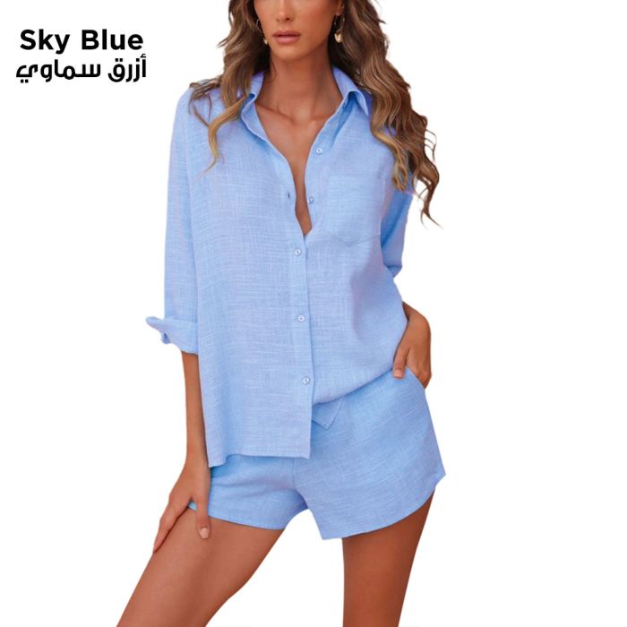 This elegant summer linen set for women offers breathable comfort and timeless style. Made from lightweight linen, it’s perfect for hot days and casual wear. The matching pieces provide a relaxed fit that’s easy to accessorize. Durable and soft, it’s a reliable wardrobe choice for both everyday wear and vacation looks.