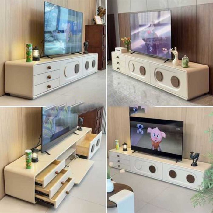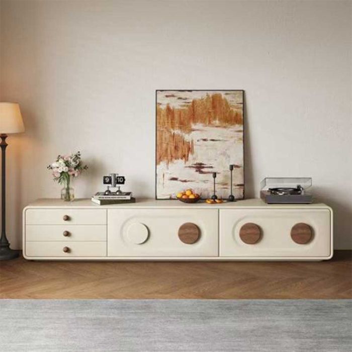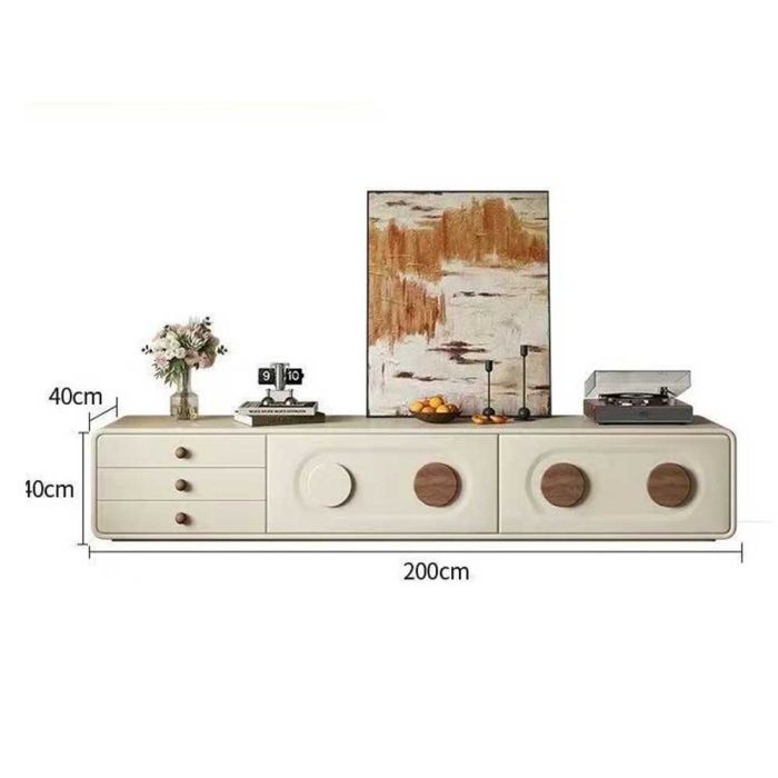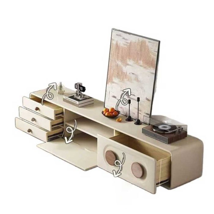 Upgrade and organize your home space with a Wooden TV Table with Doors and Internal Organizing Shelves and Drawers made from durable wood with an elegant design, offering calm organization and a refined aesthetic touch, with concealed storage that maintains harmony and enhances display appeal