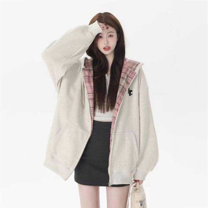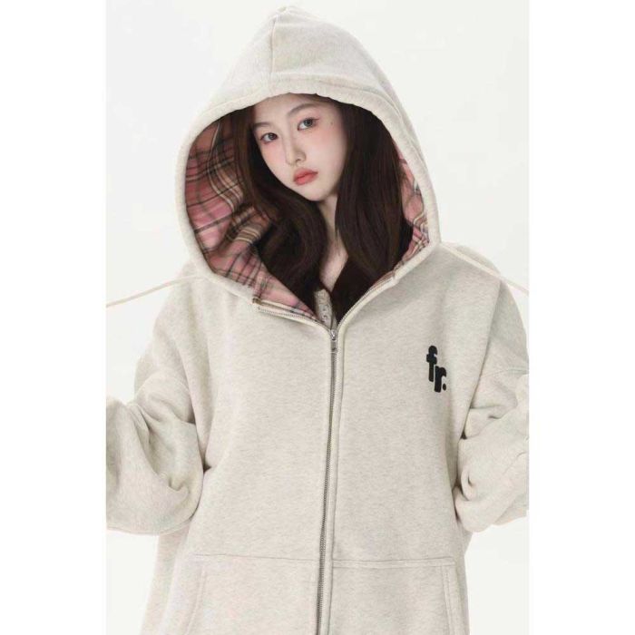 This Elegant zipper hoodie with hood for women made from a comfortable fabric that offers gentle warmth, featuring a refined look that enhances feminine style, blending elegance and comfort in a modern design perfect for daily outings with a distinctive presence