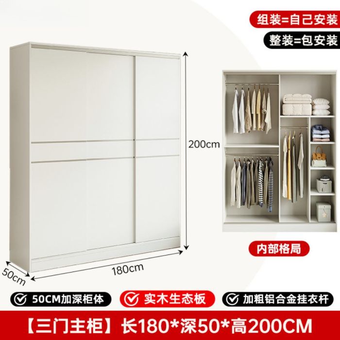 - ELMVALE Solid Wood and Fiber Wood Sliding Wardrobe with Two Doors
