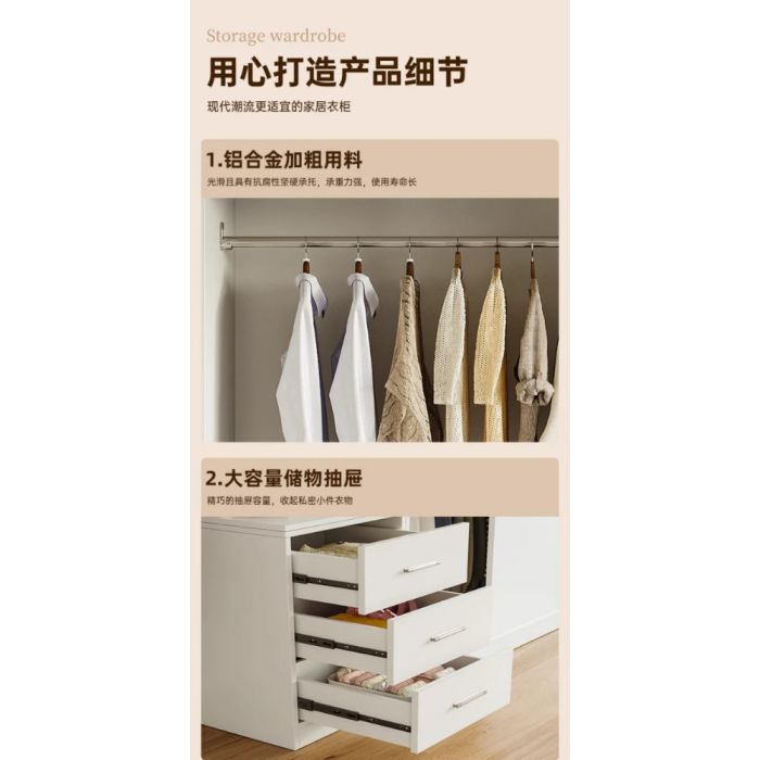 This ELMVALE Wardrobe is made of selected materials with an elegant, visually pleasing design, featuring an organized interior for easy clothing arrangement, and it includes a side cabinet. smart space utilization, and a stable structure that maintains its quality with daily use