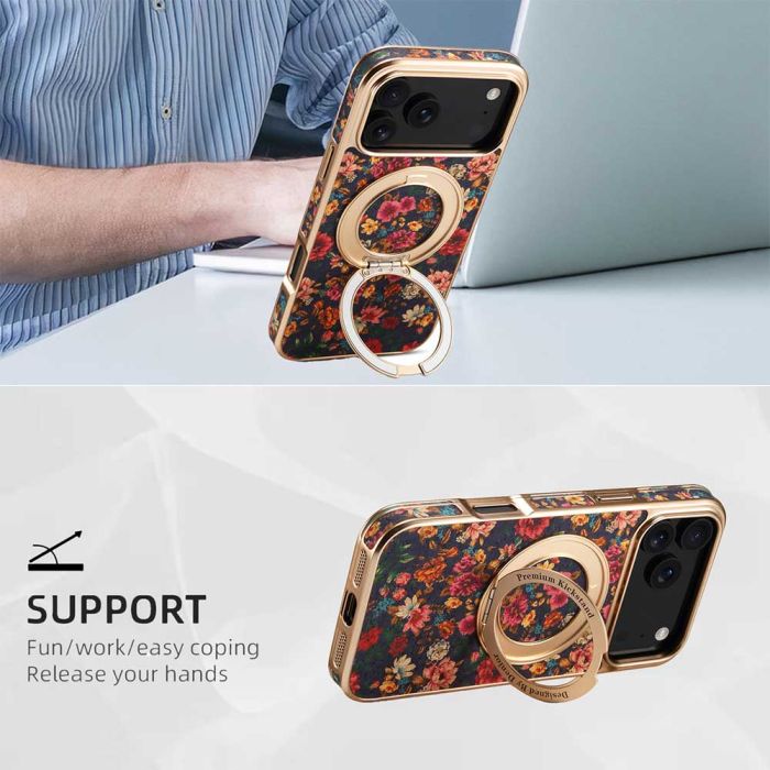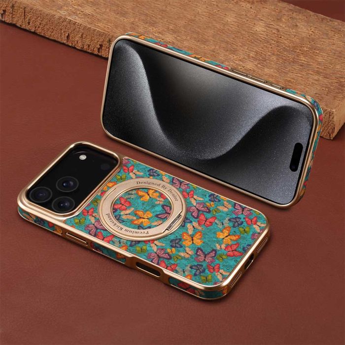 - Embossed Leather Magnetic Stand Protective Case for iPhone