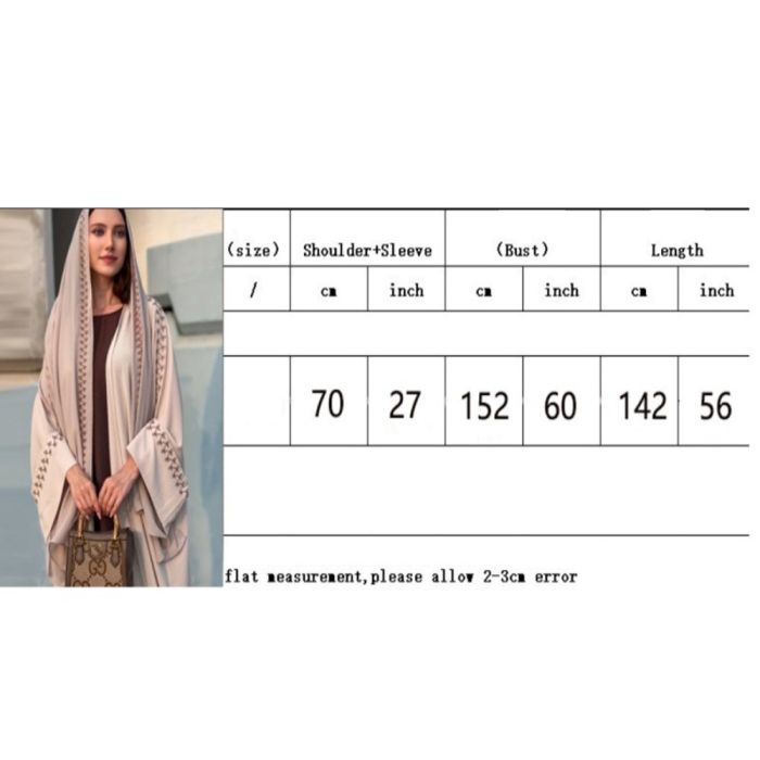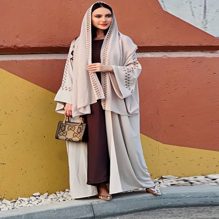 This Elegant Embroidered Abaya with Hijab for Women is Crafted from Elegant Fabric and Features an Open Design and Wide Batwing Sleeves. This Abaya Features Intricate Embroidery That Adds a Touch of Sophistication and Luxury. It is Ideal for Occasions and Offers a Modest and Beautiful Look. It Also Comes with a Matching Hijab to Complete the Elegance. an Essential Piece for Contemporary islamic Fashion, It Ensures an Attractive and Comfortable Appearance and Maintains Its Quality Thanks to the Intricate Detailing.