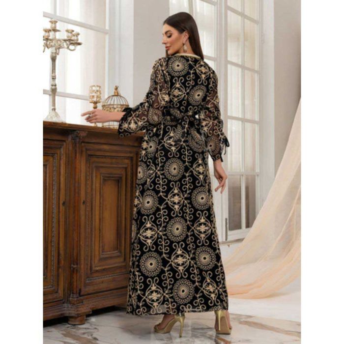 This Women’s Elegant Embroidered Two-Piece Kaftan made from premium polyester, featuring a refined design that highlights luxurious details, offering a balanced and attractive look, combining graceful flow and comfort, ideal for elegant occasions