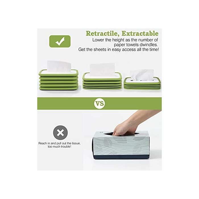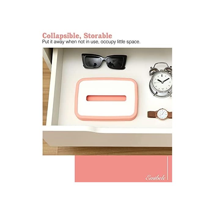 Emibele Tissue Box Cover, Rectangle Silicone Foldable Tissue Box Holder Collapsible Napkin Dispenser for Bathroom, Living room, Dining Room, Bedroom, Kitchen, Car, Office and more…