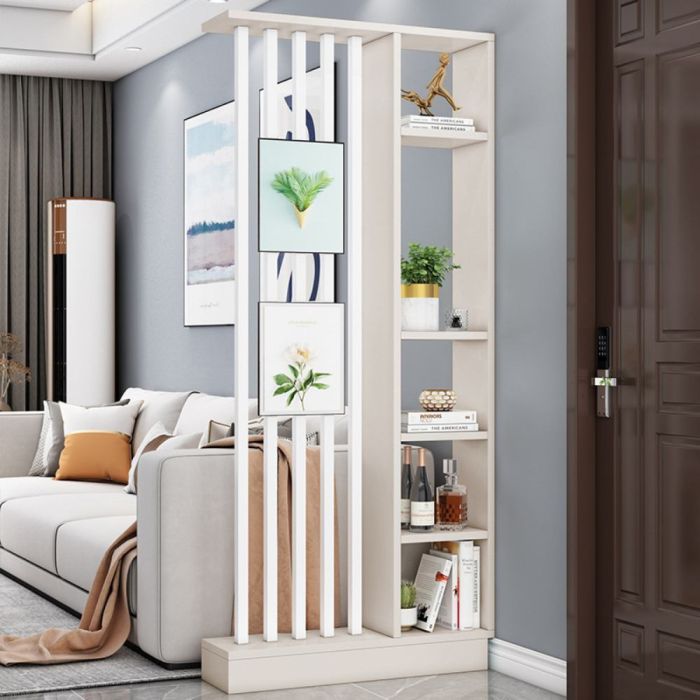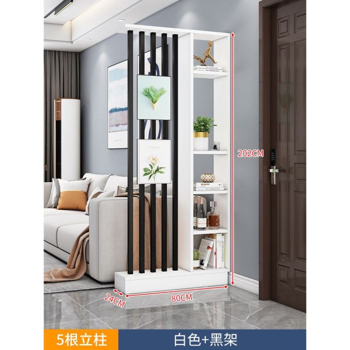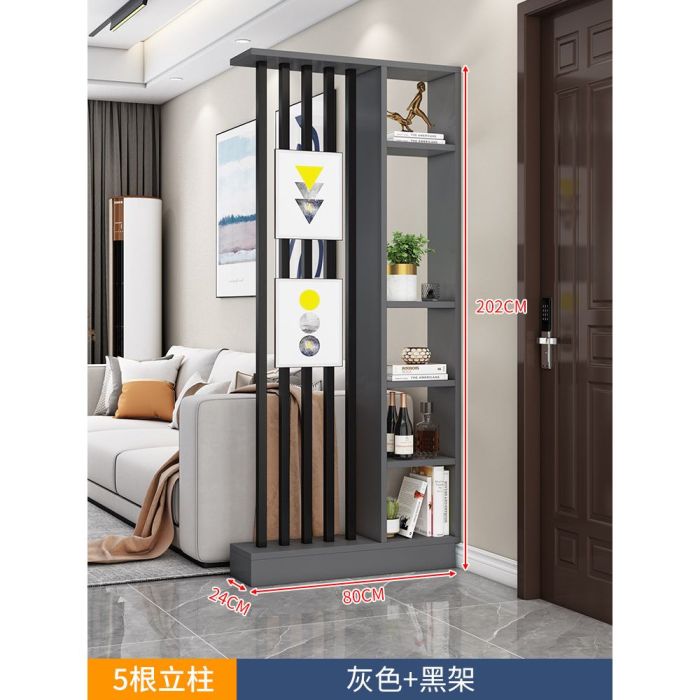 This Entrance partition with side shelves and 5 steel tubes made of particle board and a steel frame, elegant design adds a modern organized touch, suitable for displaying décor and keeping the entrance neatly arranged while maintaining its quality