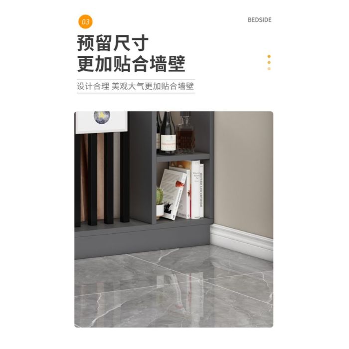 - Open side shelves for displaying décor and organizing items