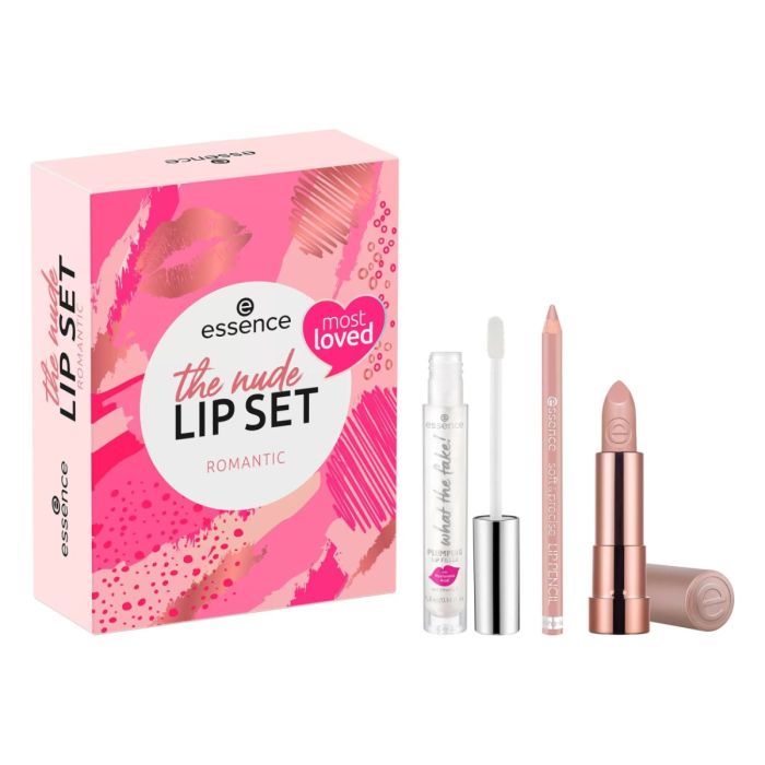The essence the nude lip set romantic creates stunning lip looks a moisturizing lipstick in a nude shade that ensures natural results. The lip pencil in a soft shade shapes the lips perfectly and precisely, and what a fake! The Plump Lip Filler creates a shiny effect with volume.