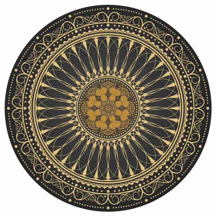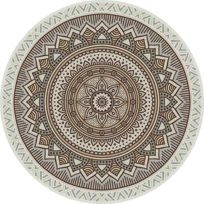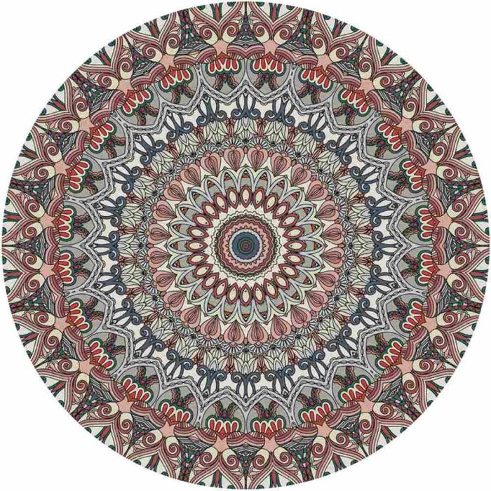 This decorative round rug is made from soft materials, features rich ornamental design, suitable for seating areas, and adds a harmonious artistic accent to the floor space
