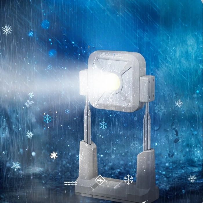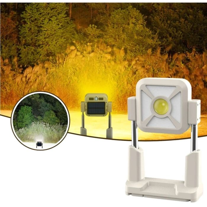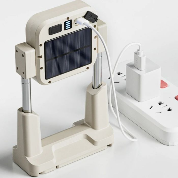 Equipped with a stable base and dual charging via solar power and USB-C, with a battery that provides up to 8 hours of lighting, making it ideal for trips, camping, and emergencies