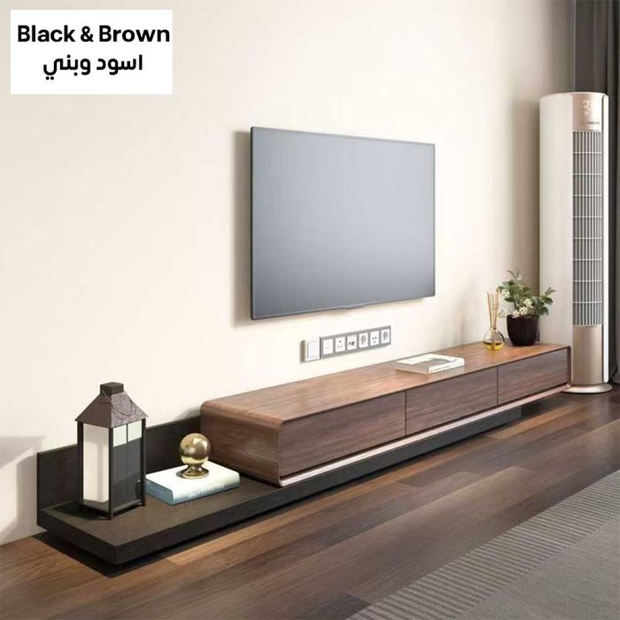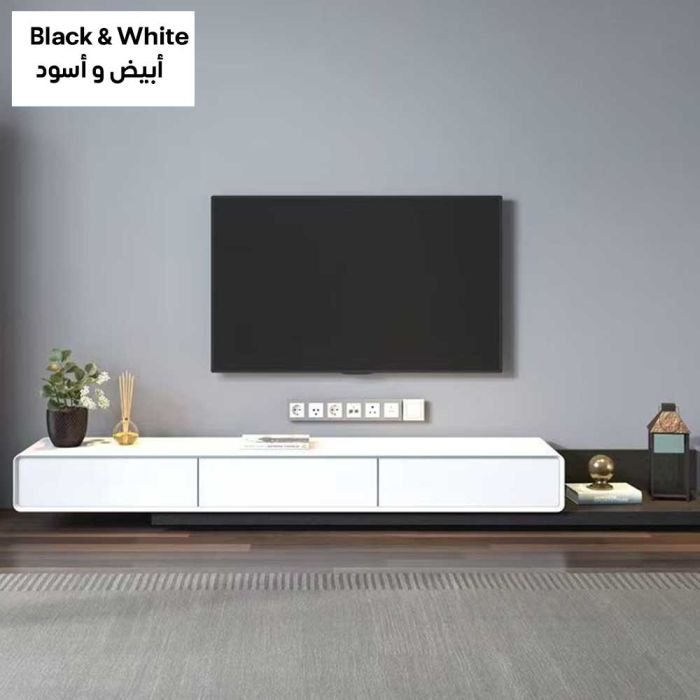 Organize and elevate your living space with a retractable wooden TV cabinet, carefully crafted to offer flexible Width adjustment and neat organization, a smart design that adapts to different spaces and adds a modern elegant touch to your home