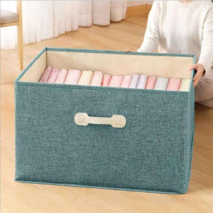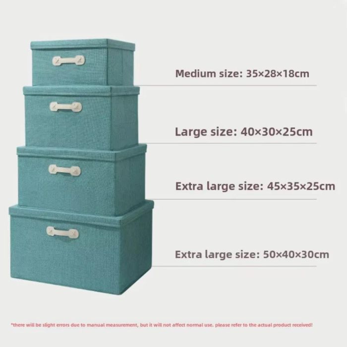 A practical and spacious storage box made of high-quality fabric with a lid to protect the contents and provide ideal home organization.