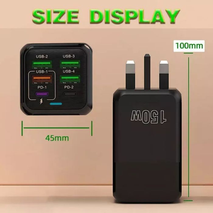 - Fast Charger 150W with 6-Port USB GaN Wall Charger by Dacksi