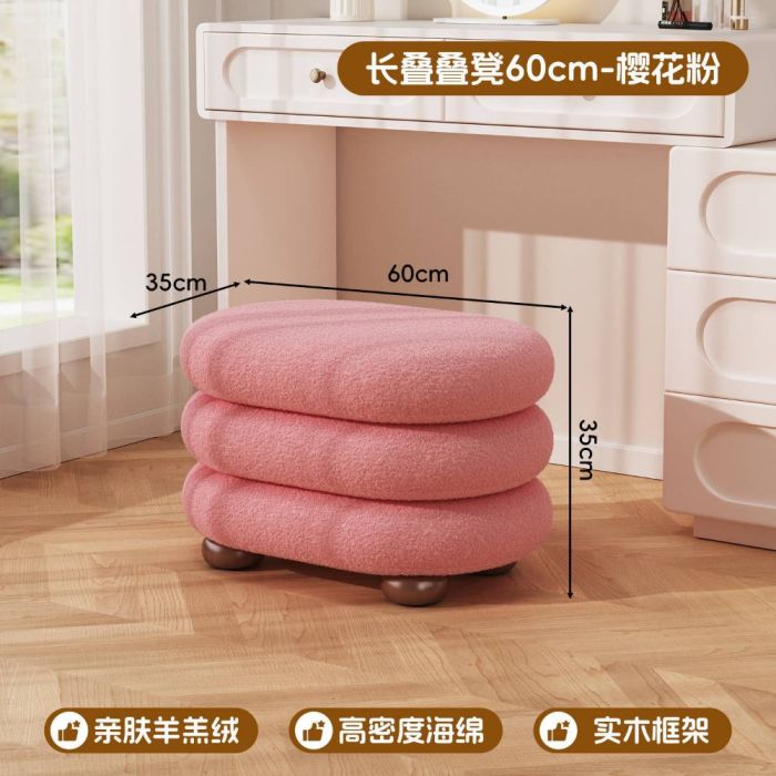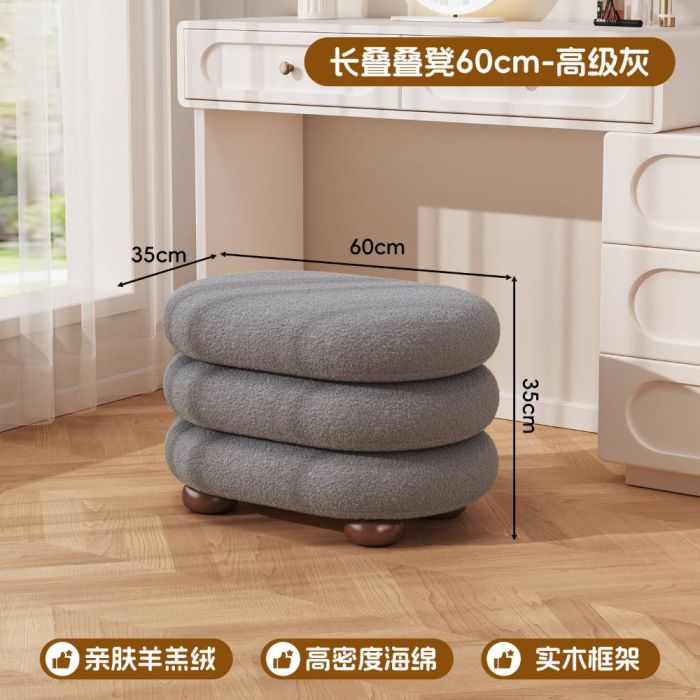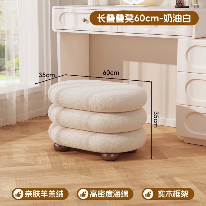 This Faux wool makeup stool with a solid wood base, featuring a soft texture and comfortable seating, adding an elegant touch suitable for dressing tables and bedrooms with a calm creamy style