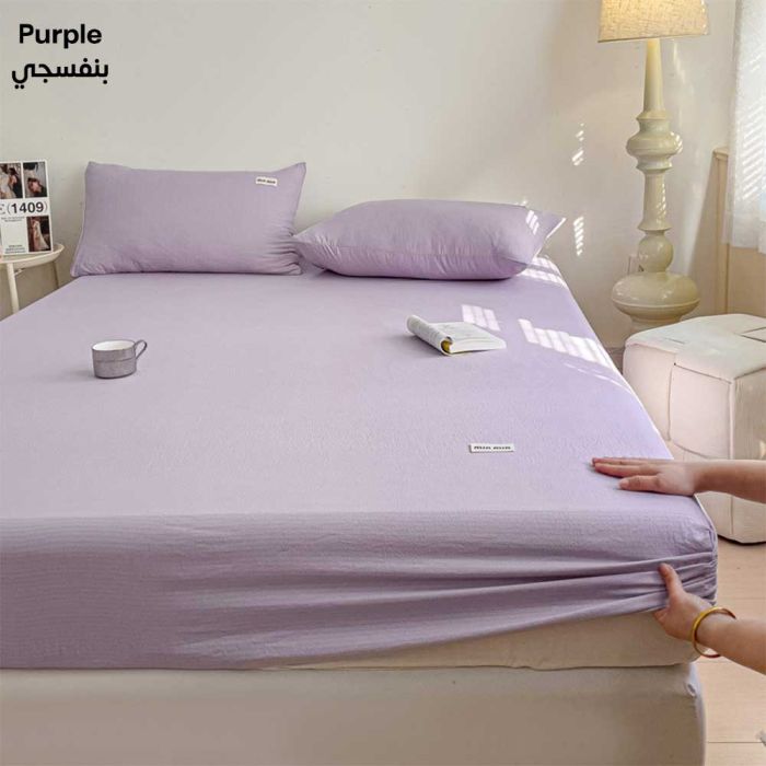 This 3-piece fitted bed set is made from high-quality fabrics to ensure comfort and softness throughout the night. It features an elegant design that adds a touch of luxury to the bedroom, providing perfect stability on the bed thanks to the elastic edges that prevent slipping, making it the ideal choice for those seeking comfort and quality simultaneously.