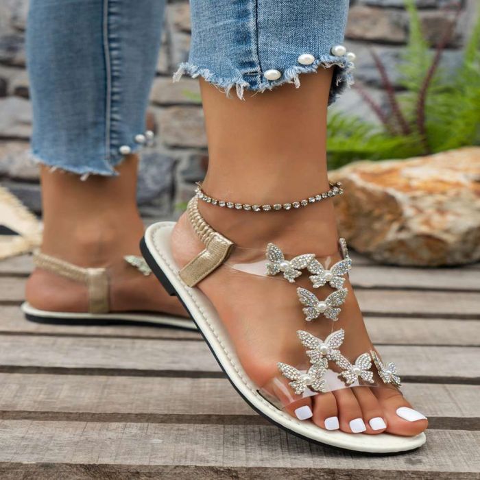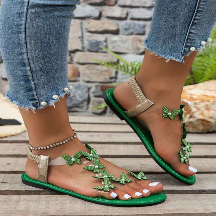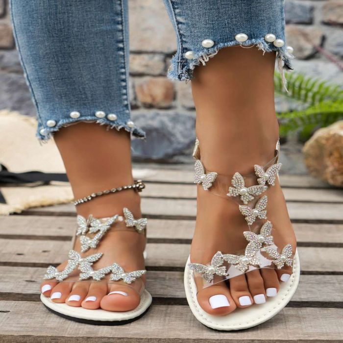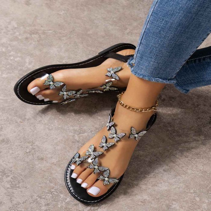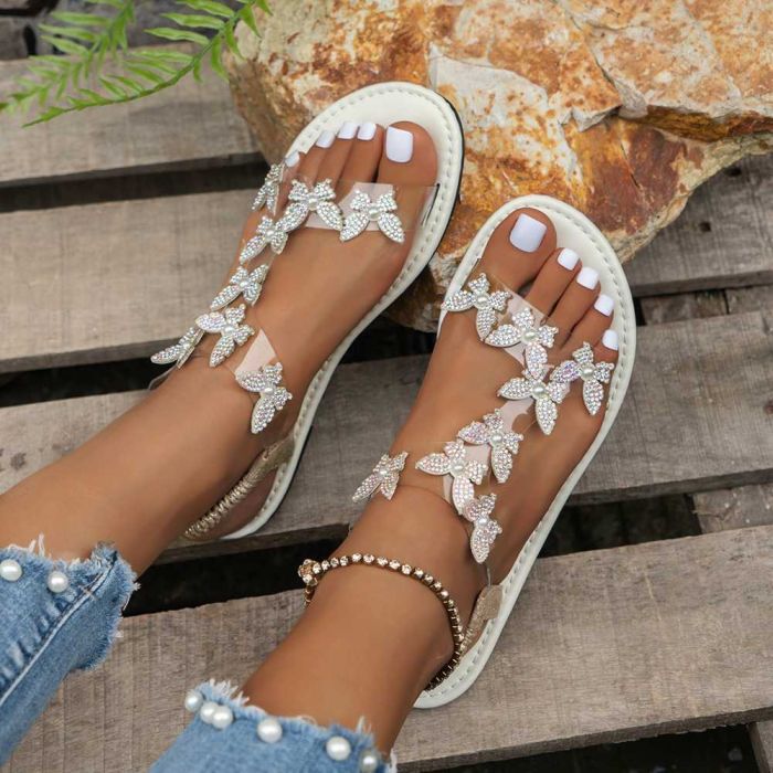 These Flat Rhinestone-embellished Sandals for Women Are Crafted from High-quality Materials That Ensure Comfort and Durability. They Are Embellished with Sparkling Rhinestones All over the Upper. They Feature a Soft, Flat Sole That Provides Light Cushioning and Superior Flexibility for Comfortable Walking All Day Long. These Sandals Are Perfect for Everyday Wear or at the Beach, Combining Attractive Design with the Required Comfort.
