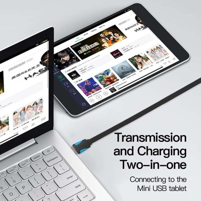 - Flat USB to Mini 5 Pin Cable 1.5M by Vention