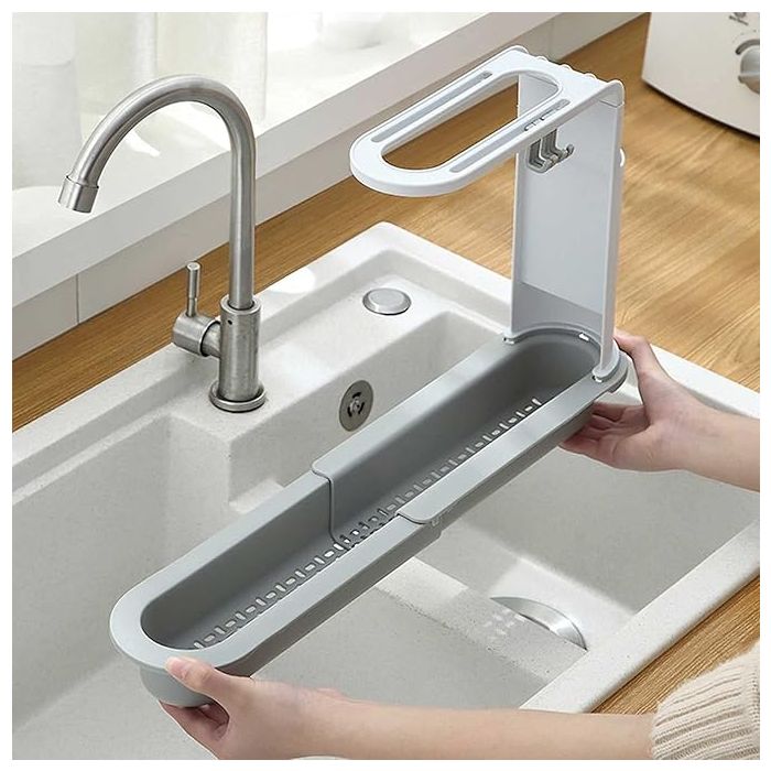 - floating shelves Sink Telescopic Drain Rack Soap Sponge Storage Basket Organizer Dishwashing Rag Hooks Holder Adjustable Shelf Kitchen Utensils