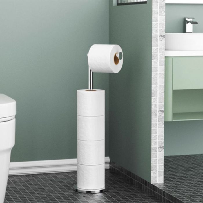 This Floor-standing paper towel stand made of stainless steel, designed to offer a stylish and practical solution for storing paper towels in your bathroom. With its foldable design, it saves space while providing easy access when needed.
