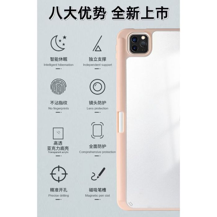 - Foldable Acrylic Protective Case with Pen Slot for iPad