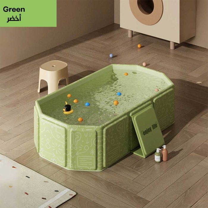 This foldable baby bathtub for indoor use is made from safe and soft materials gentle on the baby's skin. It offers optimal comfort during bath time thanks to its smart design that allows for easy sitting and reclining. Lightweight and easy to move, it is the perfect choice for mothers seeking quality and practicality in one product, ensuring a comfortable and safe bathing experience for children aged 0 to 8 years.