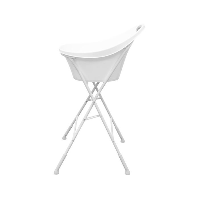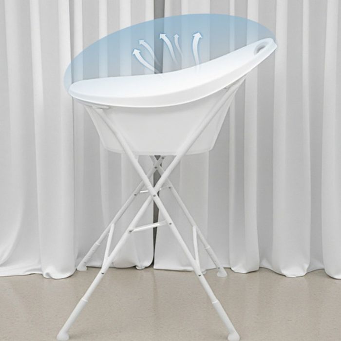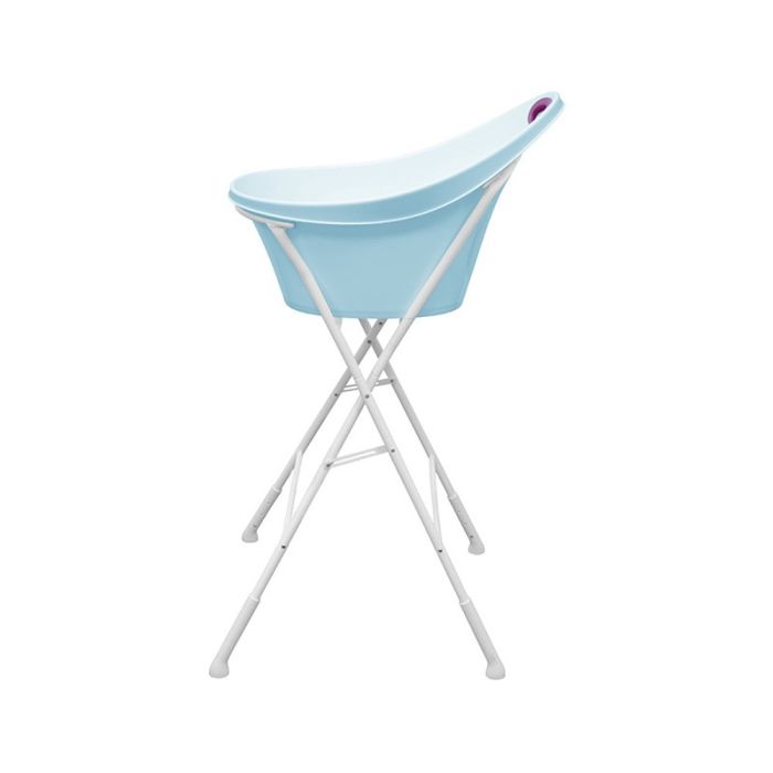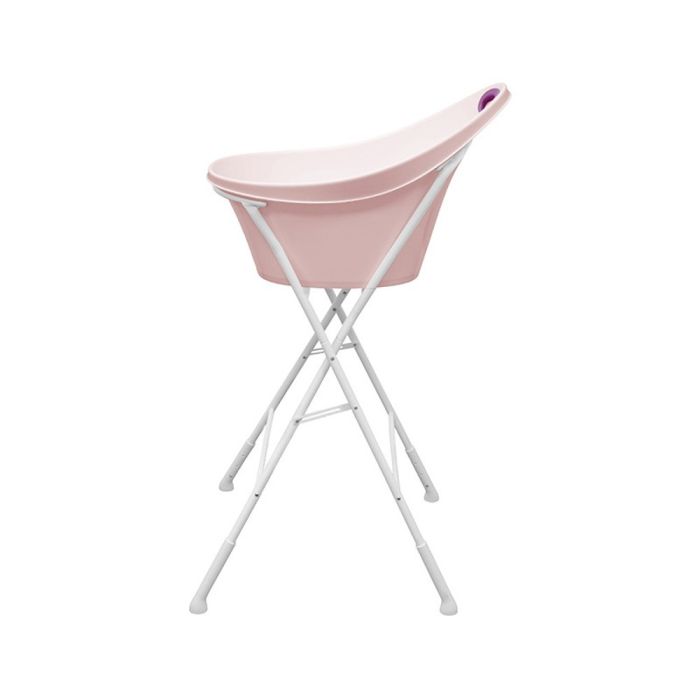 This baby bathtub for newborns is made of durable plastic with a stable steel base, a comfortable design that supports the baby back, suitable height to reduce strain, foldable for easy storage, and provides safety and comfort during bath time