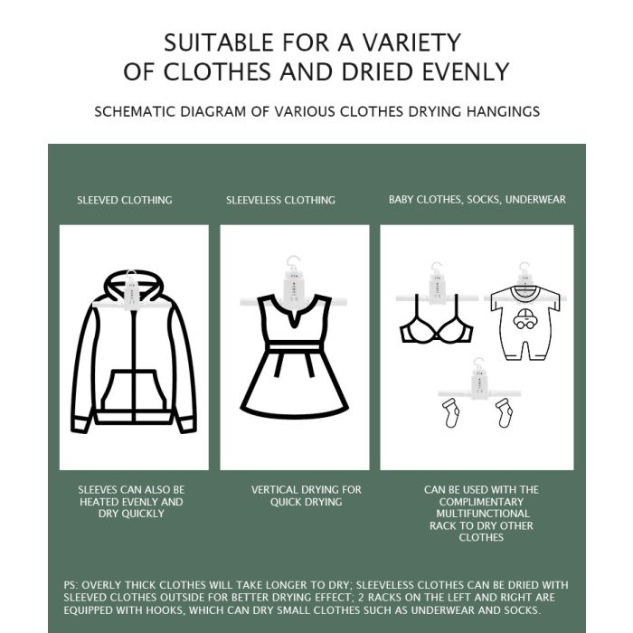 Discover a new era of drying convenience with our Smart Foldable Clothes Dryer. This cutting-edge dryer redefines traditional drying methods by offering an array of features, including an electric shoe drying rack and foldable heater hangers. Customize your drying experience by drying multiple socks together and selecting your preferred drying time and mode.
