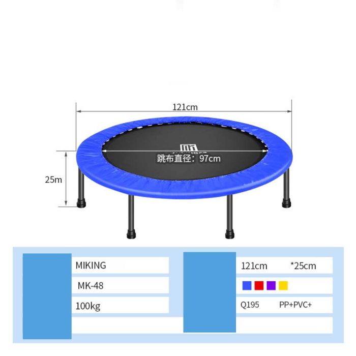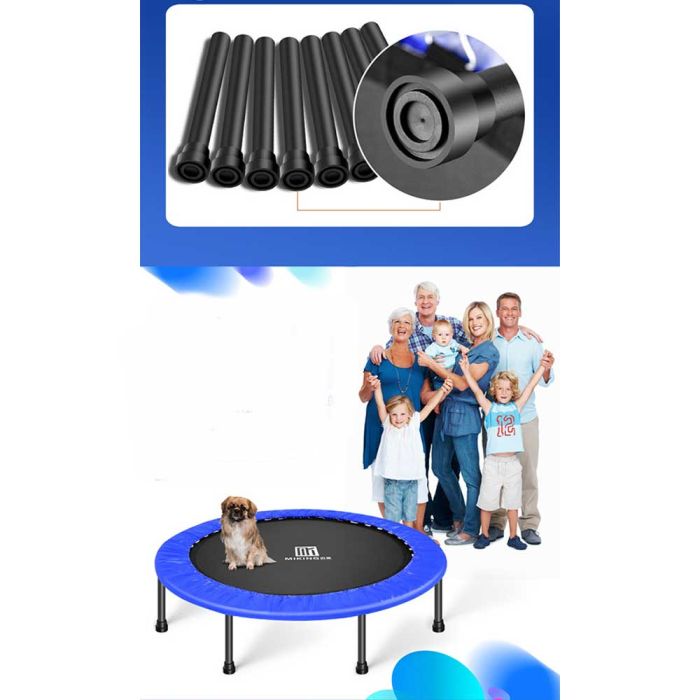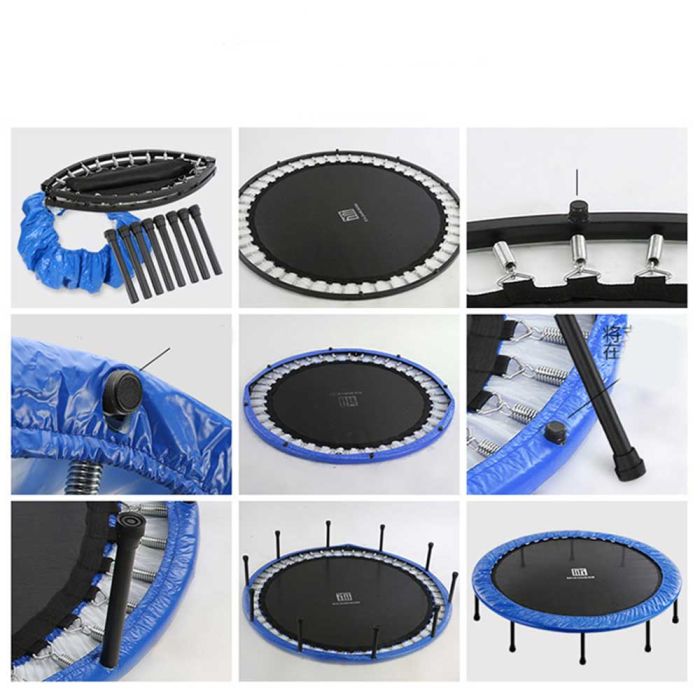 This foldable 120 cm home fitness trampoline combines fun and exercise for both kids and adults. It features a durable PP fabric resistant to water and wear, strong steel springs, and non-slip rubber feet for complete stability during jumping. Perfect for boosting circulation and overall fitness at home.