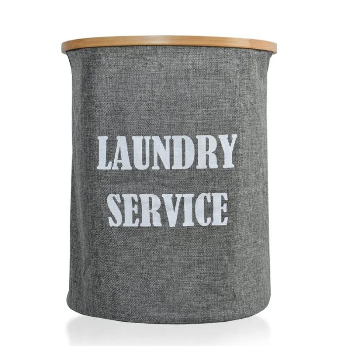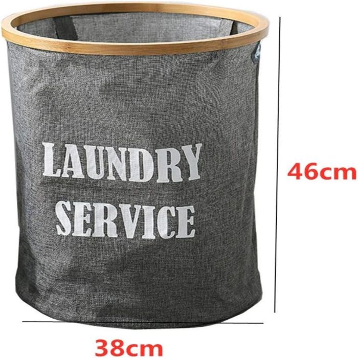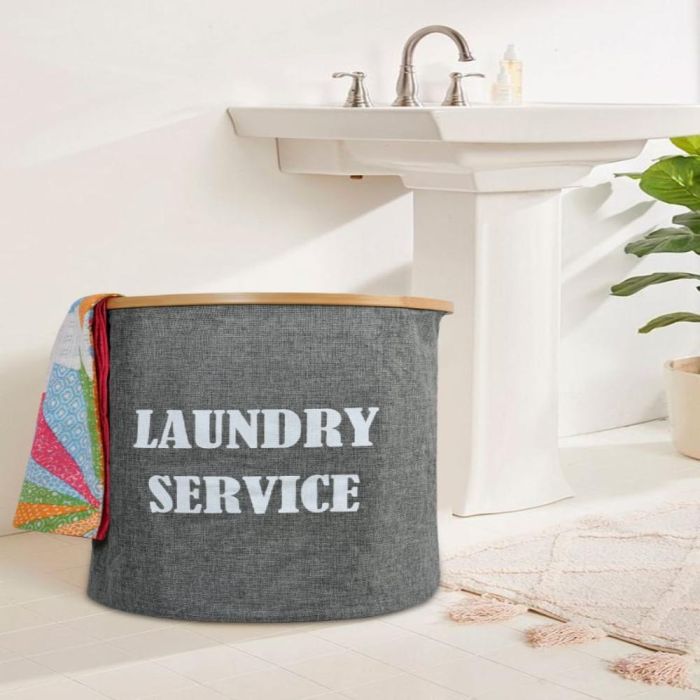 - Foldable Laundry Hamper 50L with Bamboo Support - Grey