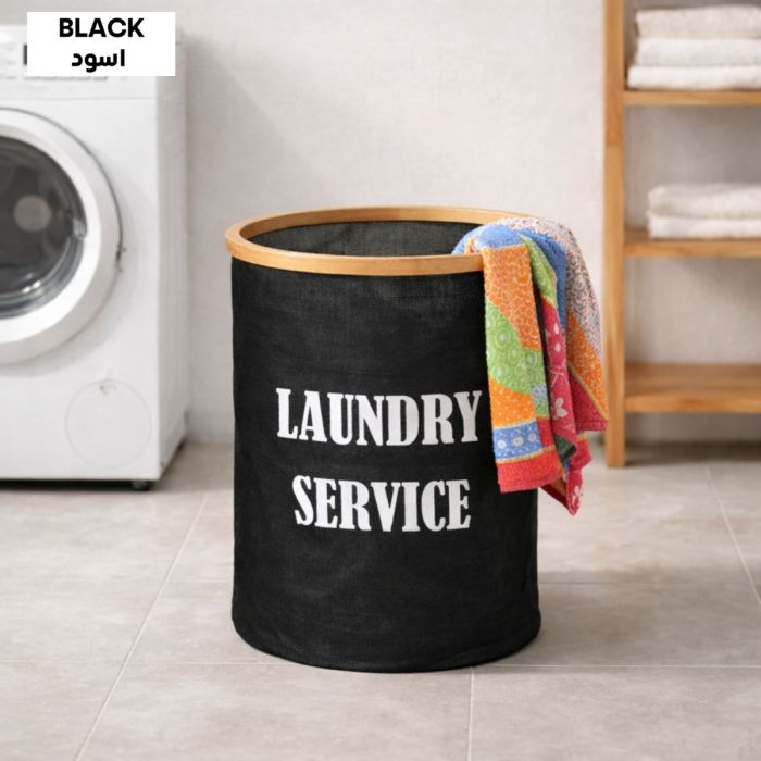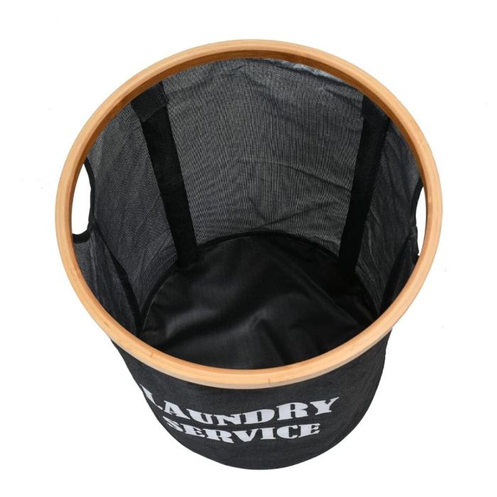 A 50-liter collapsible laundry basket with wooden supports, lightweight, easy to carry, and ideal for organizing dirty clothes at home.