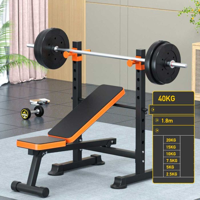 - Foldable Multi-Functional Weight Bench with Barbell and Squat Rack - 20 kg