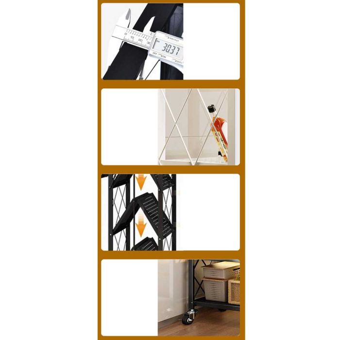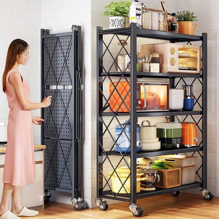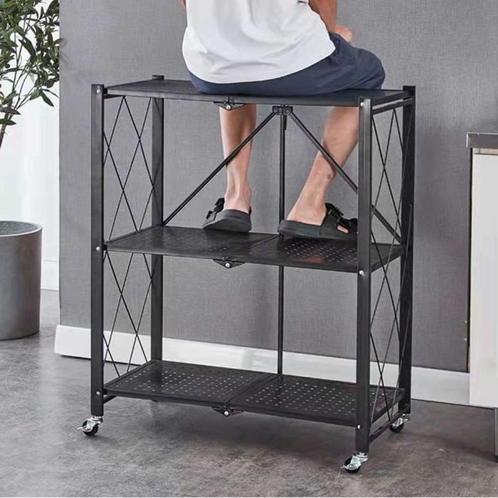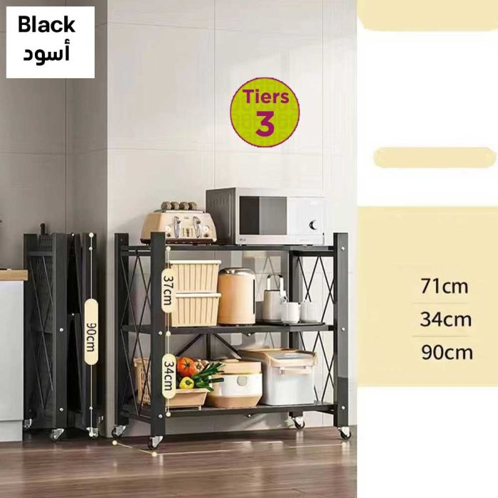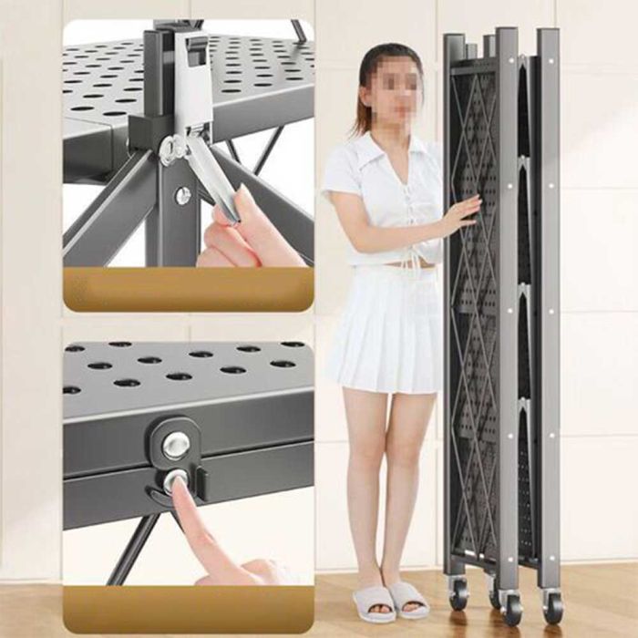 This Foldable multi layer rack with wheels made from a strong steel frame, gives you smart and quick organization for your items, with a foldable space saving design and smooth mobility that lets you move it easily whenever needed