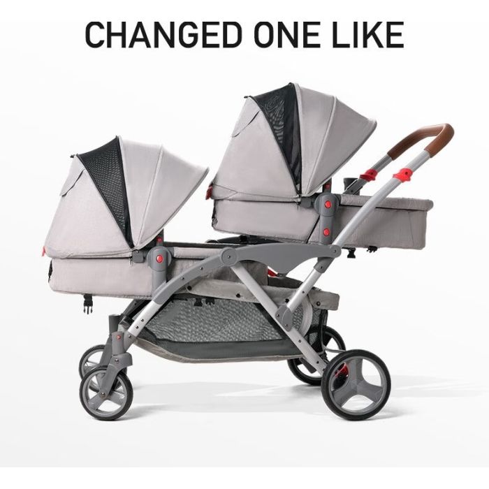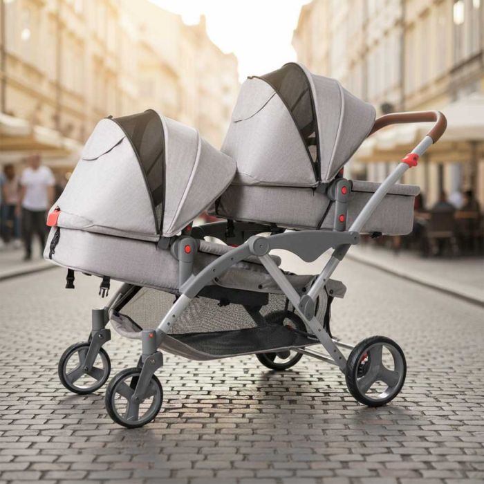 This double stroller is designed to meet the needs of families with two children, with front and rear seats that recline and lie flat for complete comfort. It is lightweight and folds easily for convenient storage and transport, and can hold up to 25 kg per seat.Today's Deal is Foldable Multifunctional Double Baby Stroller