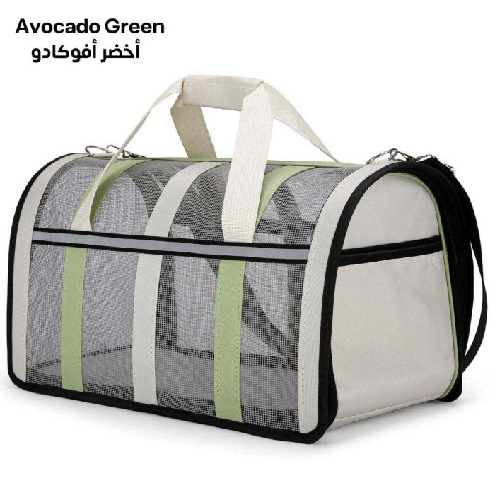 Travel safely and comfortably with your pet using this foldable carrier designed with full multi-side ventilation. It features reflective strips for added nighttime safety, along with durable metal buckles that ensure stability and strength. The adjustable strap allows for both hand-carry and shoulder-carry options, and the carrier folds easily for practical storage when not in use. A perfect choice for travel.