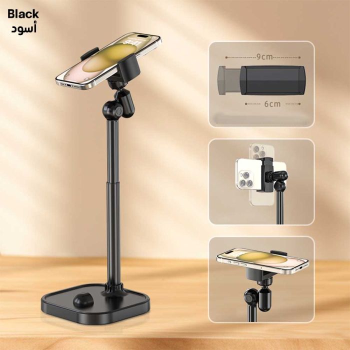 - Foldable Rotating Long Arm Metal Phone Holder - Black