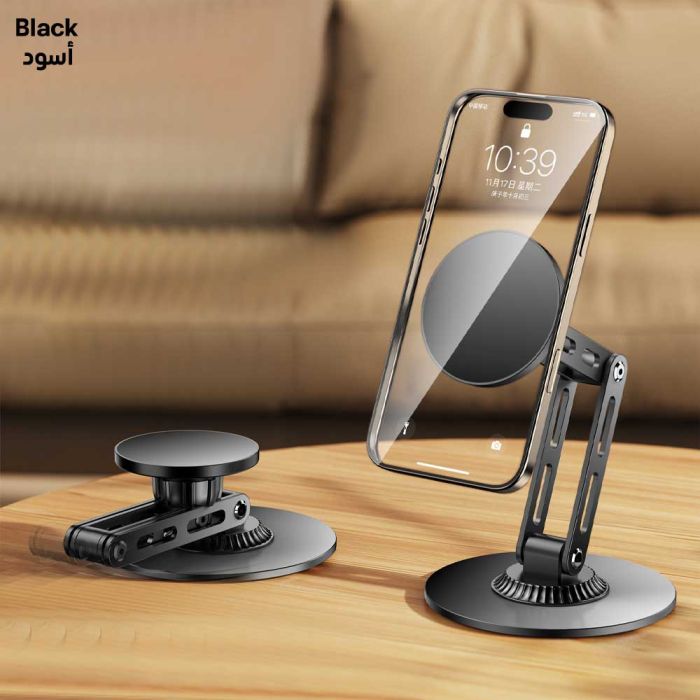 - Foldable Rotating Magnetic Metal Stand for Mobiles - Black