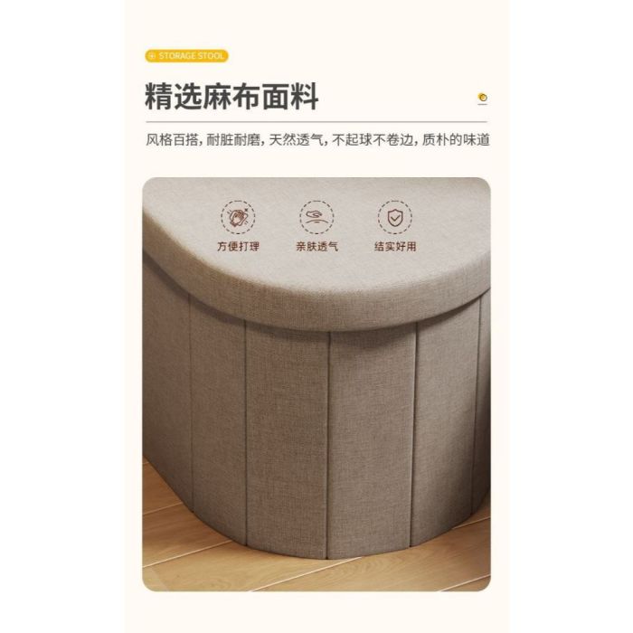 - Foldable Storage Bench Linen Fabric and MDF Frame 71×38×40 cm