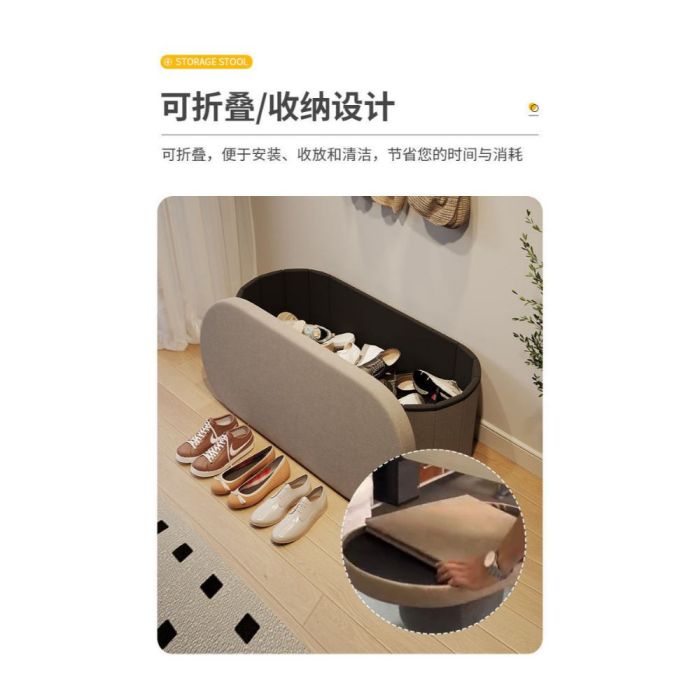 This An elegant foldable storage bench with a practical design, offering organized internal space and a comfortable seating surface, combining functionality and style for entryways or living spaces