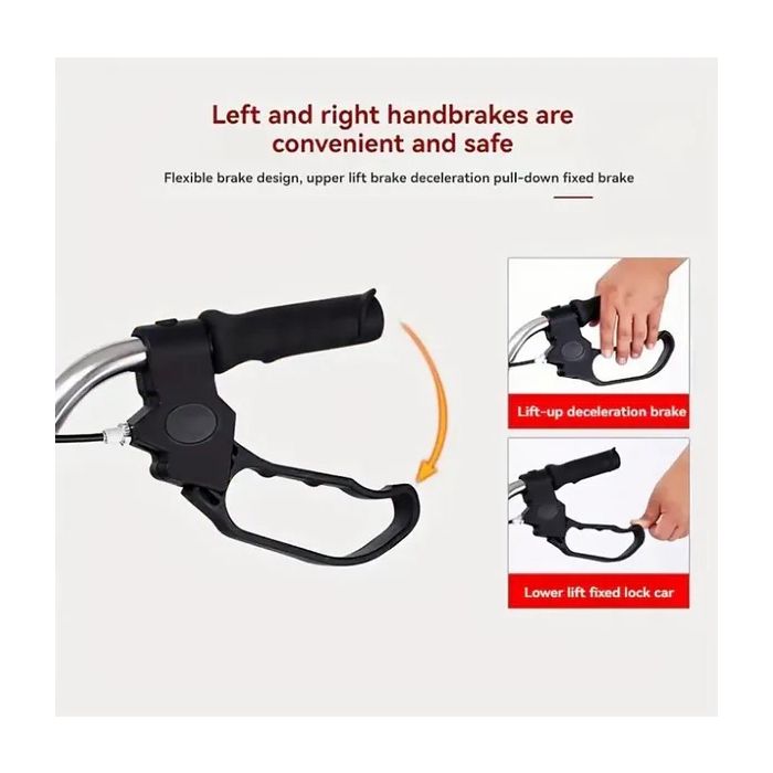 - Dual handbrake system for safe stopping and wheel locking