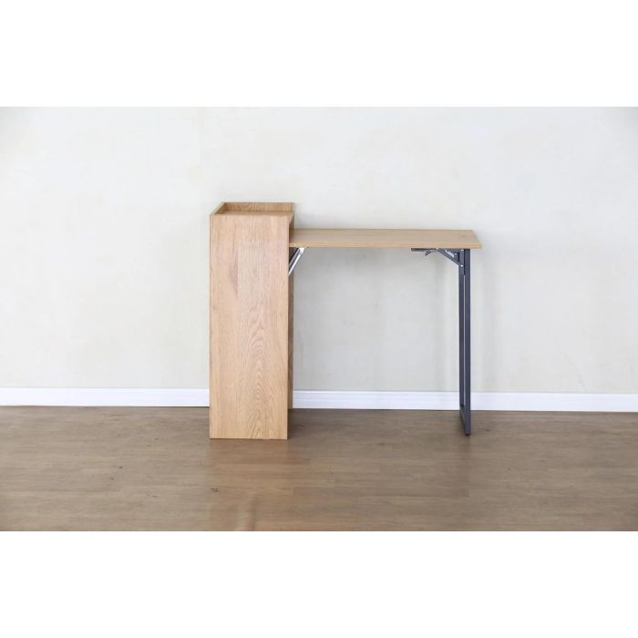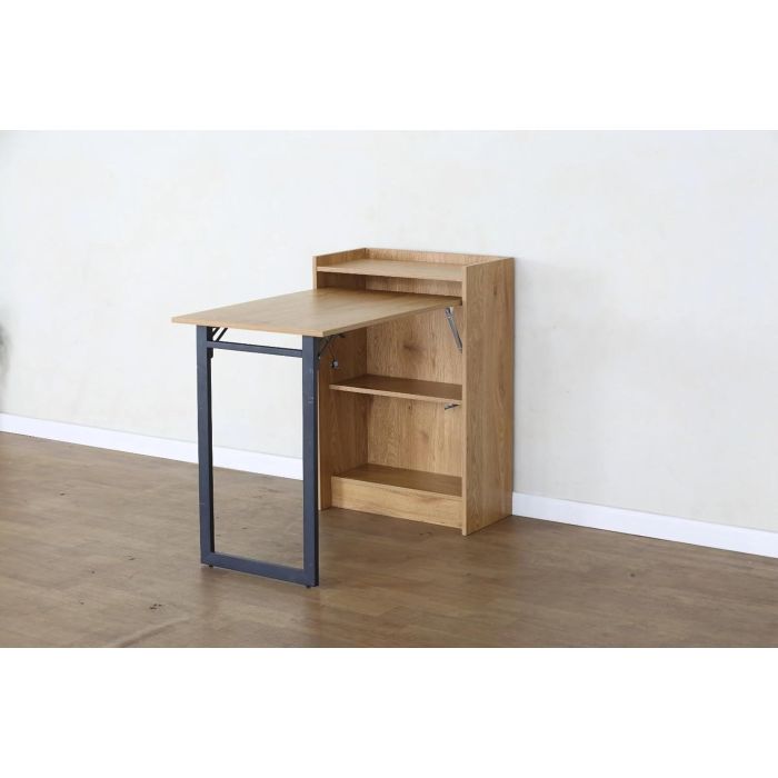 Maximise your space with this versatile Foldable Desk with Storage Shelves, designed for modern living. Measuring , this clever piece transforms from a practical work desk to a compact storage unit in seconds